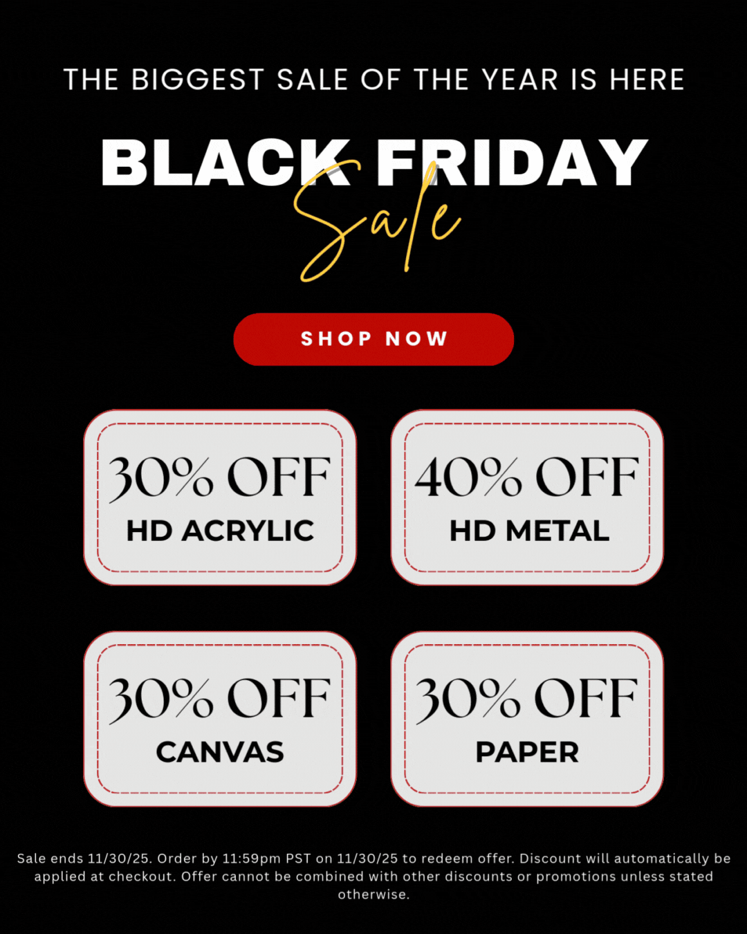 We are a Fine Art Printing Company located in Irvine, Orange County, CA. We specialize in producing the highest quality wall art on unique medias with vivid colors and detail that will knock your socks off! Some of our unique medias are our HD Metal Prints, HD Acrylic Prints and we also print on traditional medias such as Giclee Canvas, Fine Art Paper and Photo Paper.